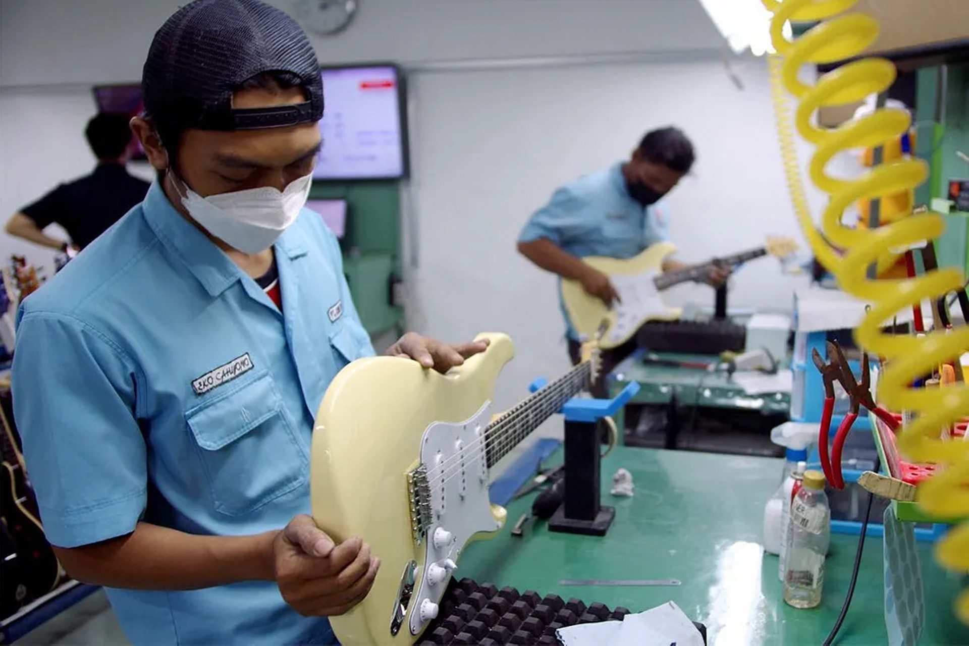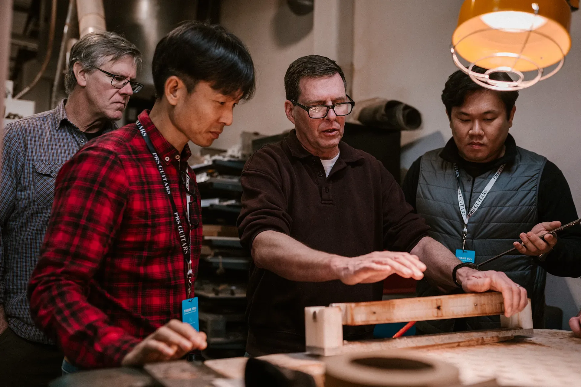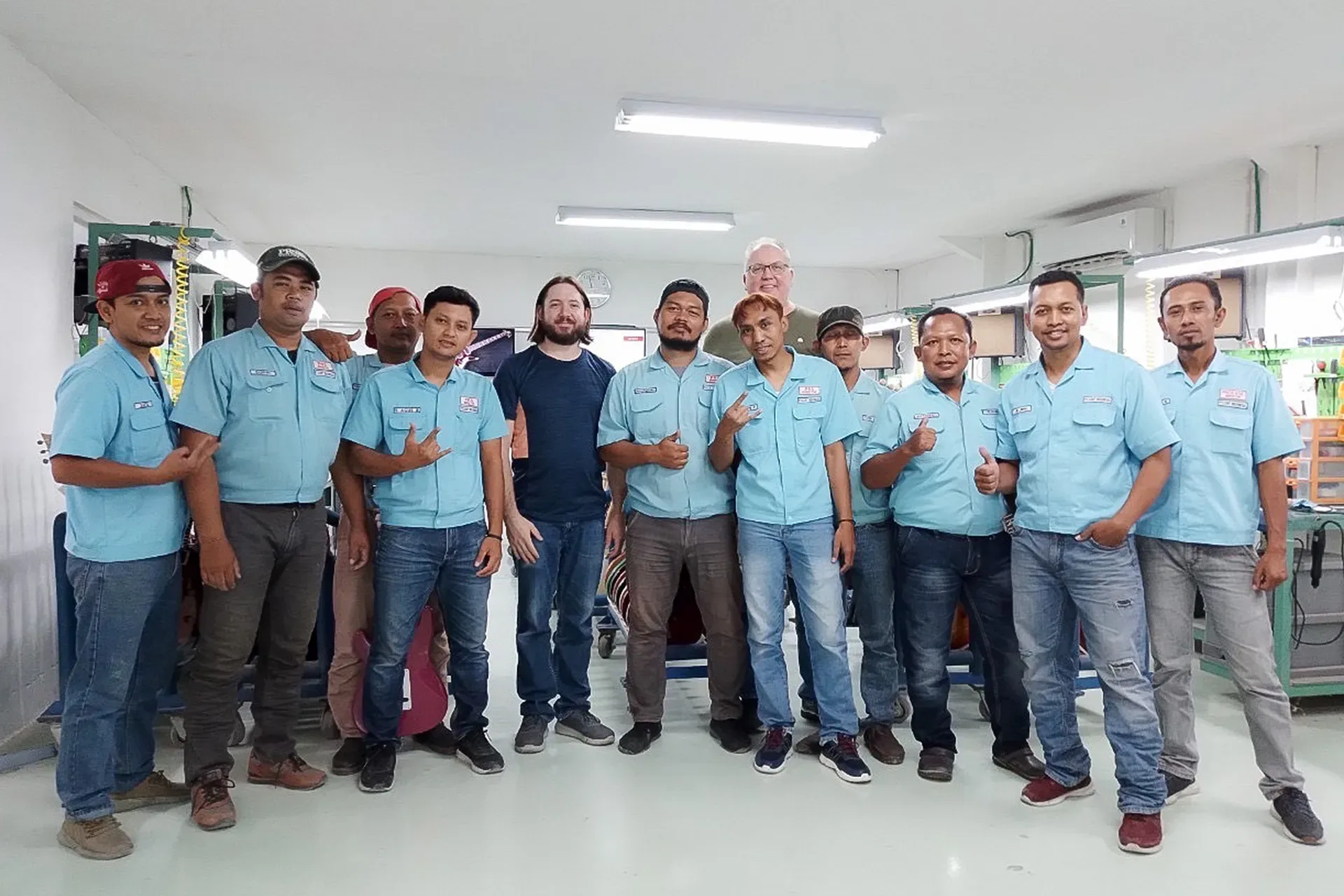 While troubleshooting and best practices can be done virtually, there's nothing better than face-to-face time to help improve production processes or solve persisting issues. That's why we value inviting members of the Indonesia-based P.T. Cort team to Stevensville to see our own manufacturing process, and see what sort of idea could be implemented back in their factory to continue elevating the SE Series. We also send employees from our headquarters in Maryland to Indonedsia to get hands-on time training our partners and seeing how improvements have been applied. Cross training in each other's factories is critical in keeping a strong relationship between PRS and our partners at P.T. Cort, as SE guitars would not be possible without the collaboration between our companies.