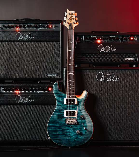 Featuring a maple top, mahogany back, wide thin maple neck, rosewood fretboard with bird inlays, and the PRS patented tremolo, the PRS SE Custom 24 boasts many familiar appointments. Its versatile sounds come from the 85/15 “S” pickups paired with a volume, push/pull tone control, and 3-way blade pickup selector. Now with ergonomic lampshade knobs and PRS's flat-grip switch tip design, the PRS SE Custom 24 is more performance-ready than ever.