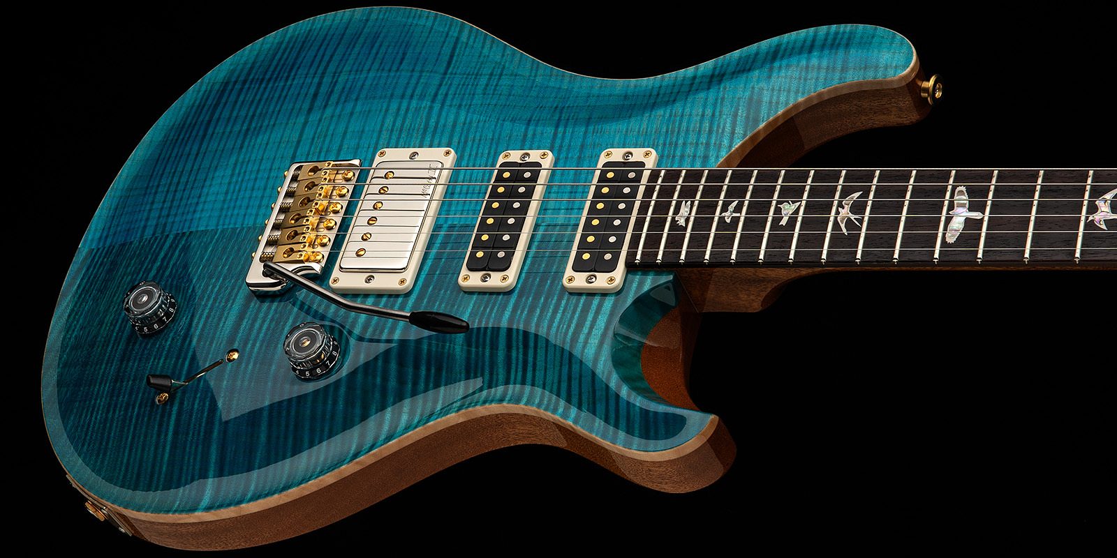 Other specifications include a maple top, mahogany back and neck, and a rosewood, 22-fret, 25” scale length fretboard with PRS trademark bird inlays. The PRS Studio is anchored by PRS’s patented Gen III trem and Phase IIl Locking Tuners with Wing Buttons, both designed for excellent tuning stability while maximizing the transfer of the strings’ vibration through the instrument.